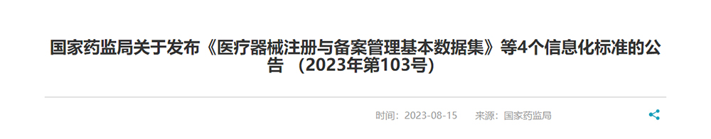國家藥監(jiān)局關(guān)于發(fā)布《醫(yī)療器械注冊與備案管理基本數(shù)據(jù)集》等4個信息化標準的公告..